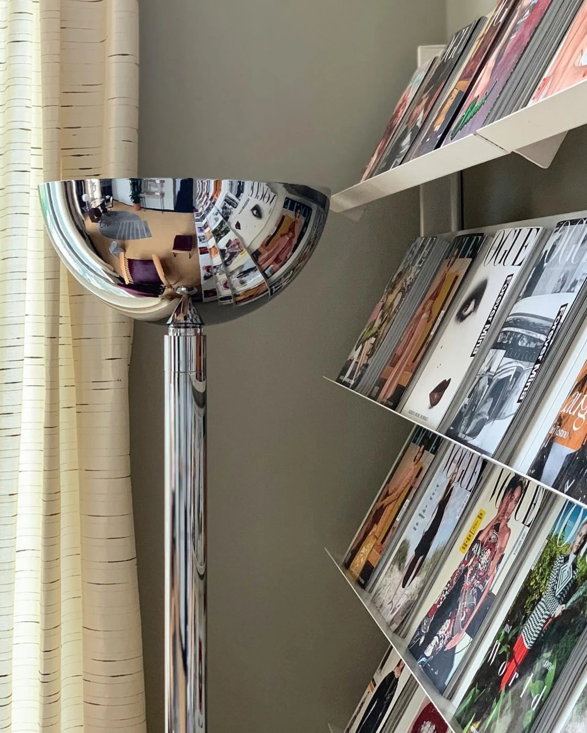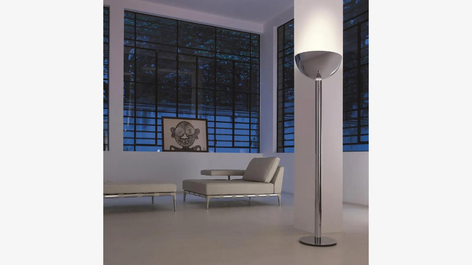 Yukarıya doğru ışıklandırma için krom metalden yapılmış zemin lambası