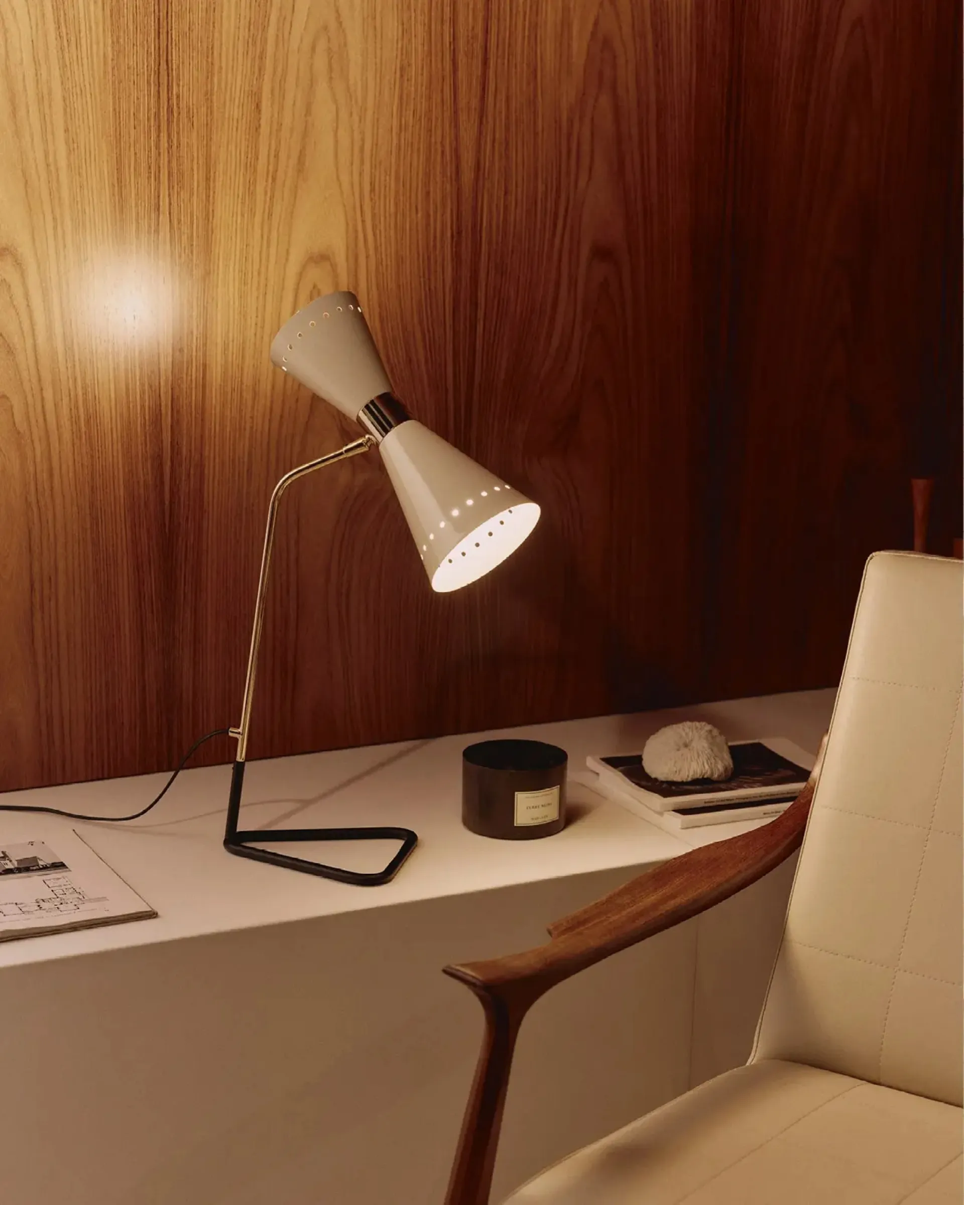 Mağazamızda, her ihtiyaca uygun en verimli lambaları sunuyoruz: kaliteli ve orijinal teklifler seni bekliyor. Fotoğraftaki lamba hoş bir ışık yayarak farklı dekorasyon tarzlarına uyum sağlar, estetik değeri her zaman en üst seviyede tutar. Stil seçimlerine zorlayan değil; 1950'lerin masa lambası Megafono, malzeme ve teknoloji açısından üstün özelliklere sahiptir. Aydınlatma dünyası farklı bir dil konuşsa da ev dekorasyonuyla uyum sağlar, işlevsellik ve estetik nitelikleri bir araya getirir. Stilnovo, dayanıklı malzemelerle her zaman tarzı belirleyebilecek iç mekan masa lambaları sunar.