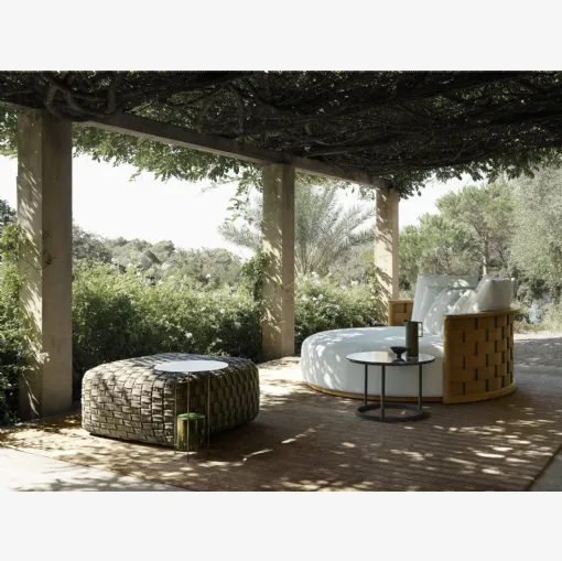 Kaliteli ve mükemmellikten ödün vermeyen dayanıklı malzemeler ve trend çizgileri, Molteni & C'nin rattan şezlong modelini ayırt eder.