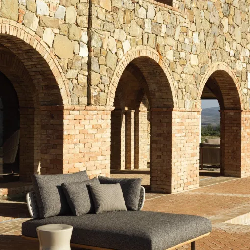 Molteni & C. şirketinin çeşitli bahçe koltukları çözümleri ile dış mekanı kumaşla dekore edin.