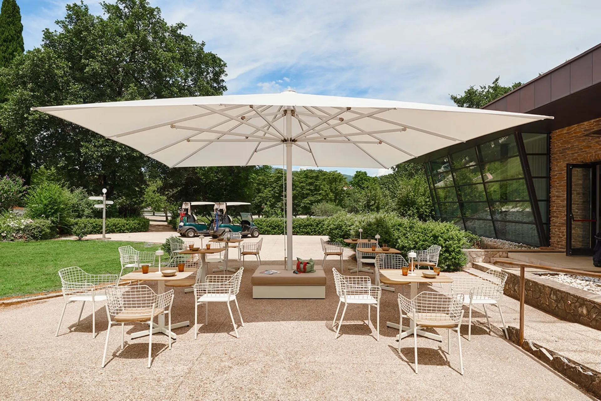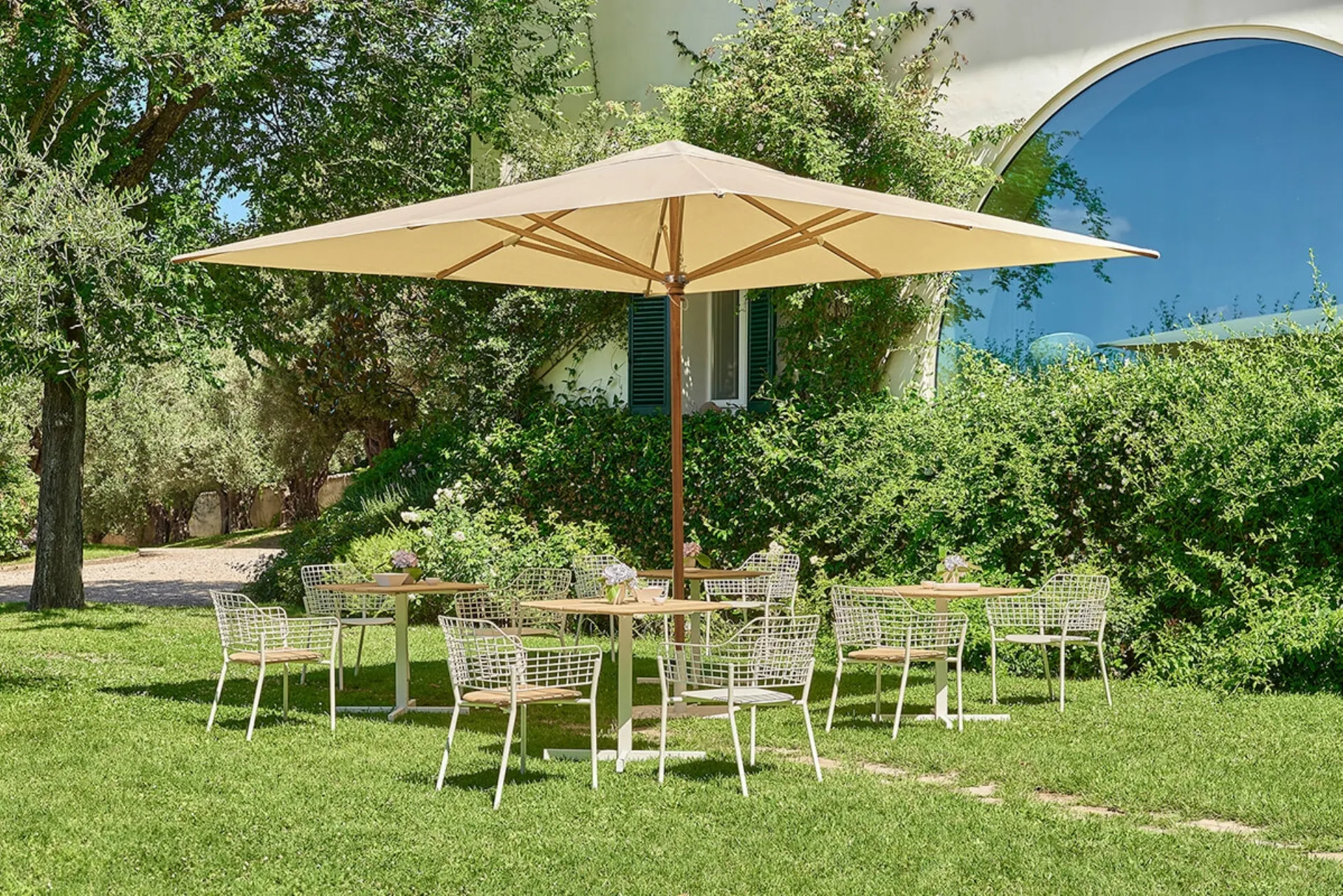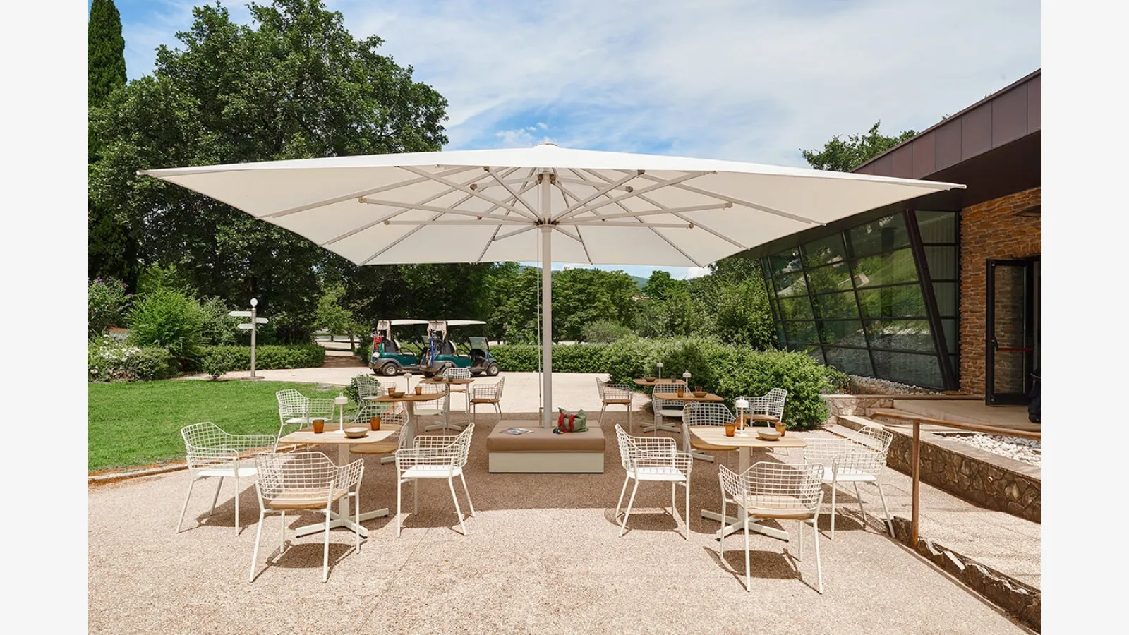 Mobilya ve şemsiyelerimizi keşfedin: Fotoğrafta görülen metal Lyze Sandalye ve Koltuk modeli sizi b