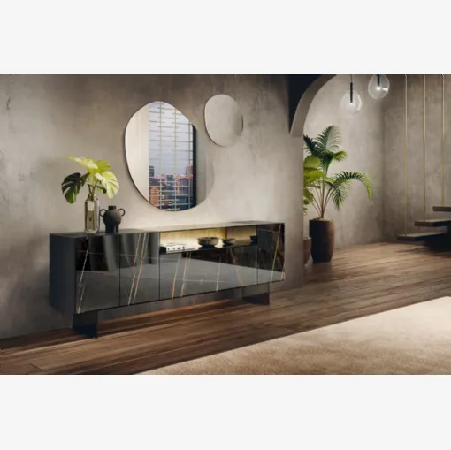 Bu fonksiyonel ve kullanışlı bir oturma odası Lago'dan 36e8 Glass 1332 şifoniyer ile dekore edin: