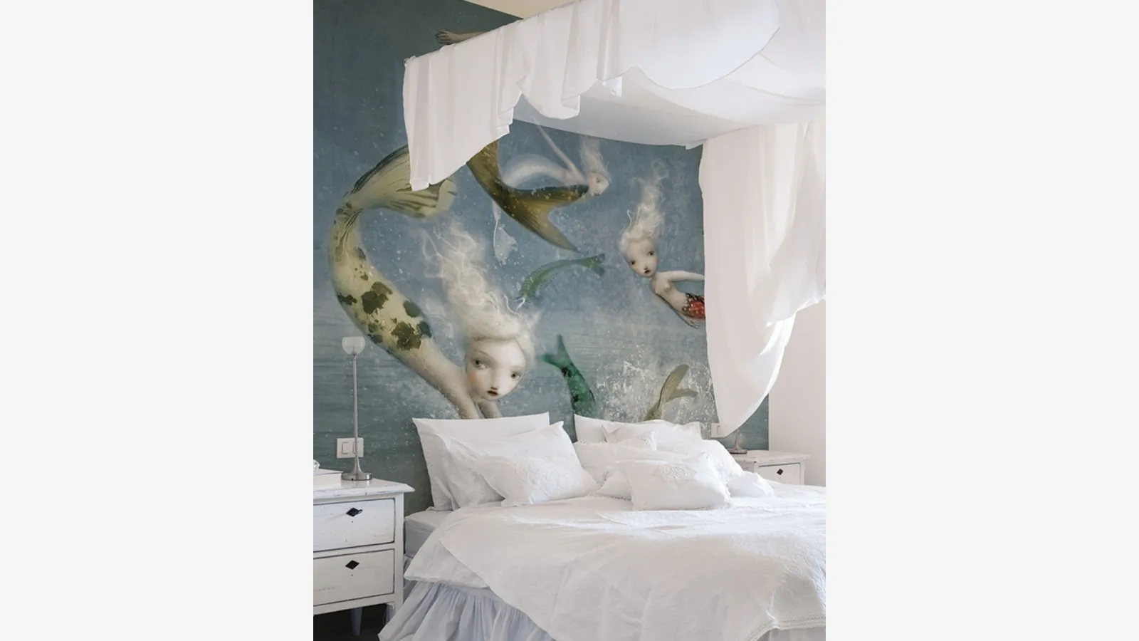 Bu model, modern bir oda için idealdir: konu, diğer mobilya ve eşyalarla dengeli bir şekilde dekore eder ve odaları süsler. Modern duvar kağıdını seçerken, diğer mobilyalarla stilistik olarak uyumlu olmasına dikkat edilmelidir, böylece odalar mükemmel bir şekilde tamamlanır. Senin için uygun vinil duvar kağıdını seçtikten sonra, sonucun her zaman mobilyanın estetiği ile dengeli olması gerektiğini unutma. Mağazamıza gelip estetik değeri yüksek çözümlerimizi doğrudan görüntüleyebilirsiniz: stil ve renk kombinasyonlarını değerlendirebilirsiniz. İnkiostro Bianco'nun Denizkızları Duvar Kağıdı, mükemmellikle eş anlamlı olan markanın diğer ürünleri ile mağazamızda bulunmaktadır