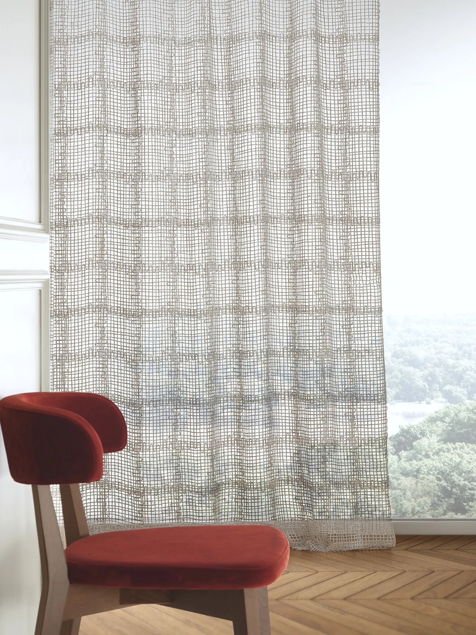 Akro Texture'in Tenda Fil Art 03 kumaşında iç mekanlara kişilik ve cazibe katacaktır; modern mobilyalar ve aksesuarlar ile döşenmiş bir iç mekanda, ev dekorasyonunu tamamlayan ve mekana işlevsellik ve güzellik katan alanı kullanışlı bir şekilde doldururlar. Aksesuarlar ve perdeler, ev dekorunu tamamlayarak mekanın işlevselliğini ve estetiğini tamamlarlar. Kumaş modern aksesuarlar son derece çok yönlü ve çok işlevlidir; mekanın işlevselliği ve estetiğini tamamlarlar. Şirketin kumaşta modern perdelerin kalitesini canlı olarak görebileceğiniz showroomumuzda, fotoğraftaki bu çözüm gibi. Akro Texture markasının cazibe dolu kompozisyonları, renk ve zevk ile iç mekanları dekore ederek özel