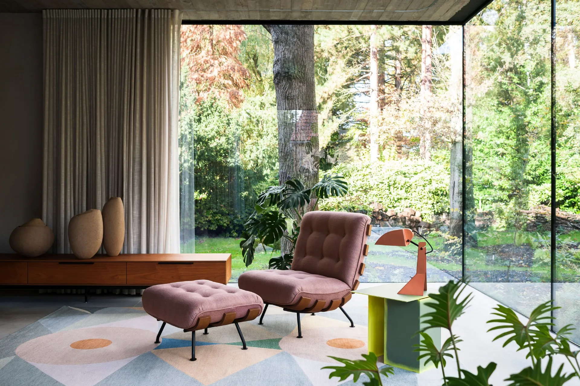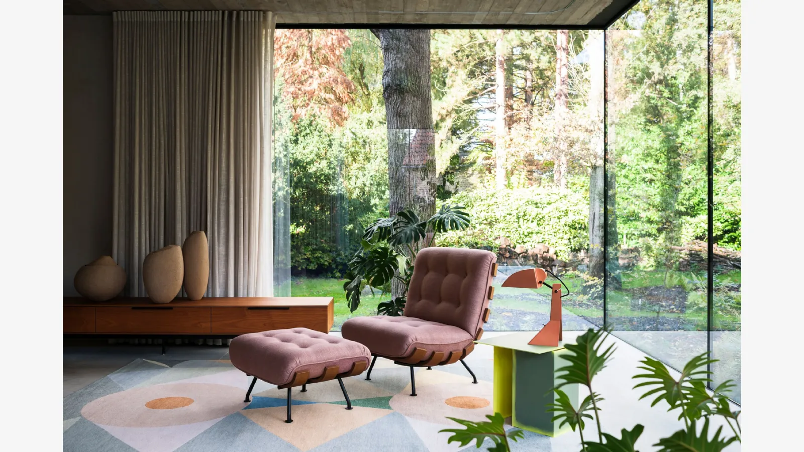 Tacchini markasının yüksek estetik değere sahip dekoratif kompozisyonları, renkleri ve tarzlarıyla iç mekanları dekore ederek özgün dekorasyon atmosferleri yaratıyor. Çok yönlü ve çok işlevli olan modern kumaş aksesuarlar, çeşitli fonksiyonları yerine getiriyor: mekanın pratik özelliklerini ve estetik değerini tamamlıyor. Mağazamızda, imzanın modern kumaş halı modellerinin kalitesini gözlemleyebilirsiniz, bu fotoğraftaki öneri gibi. Aksesuarlar ve halılar ev dekorasyonunu tamamlayarak mekânda kullanışlı bir şekilde yer kaplayarak sıcak ve hoş bir görünüm sağlıyor. Tacchini kumaş Halı Rituale: modern çağrışımları olan mobilya ve aksesuarlarla dekore edilmiş bir iç mekâna kiş