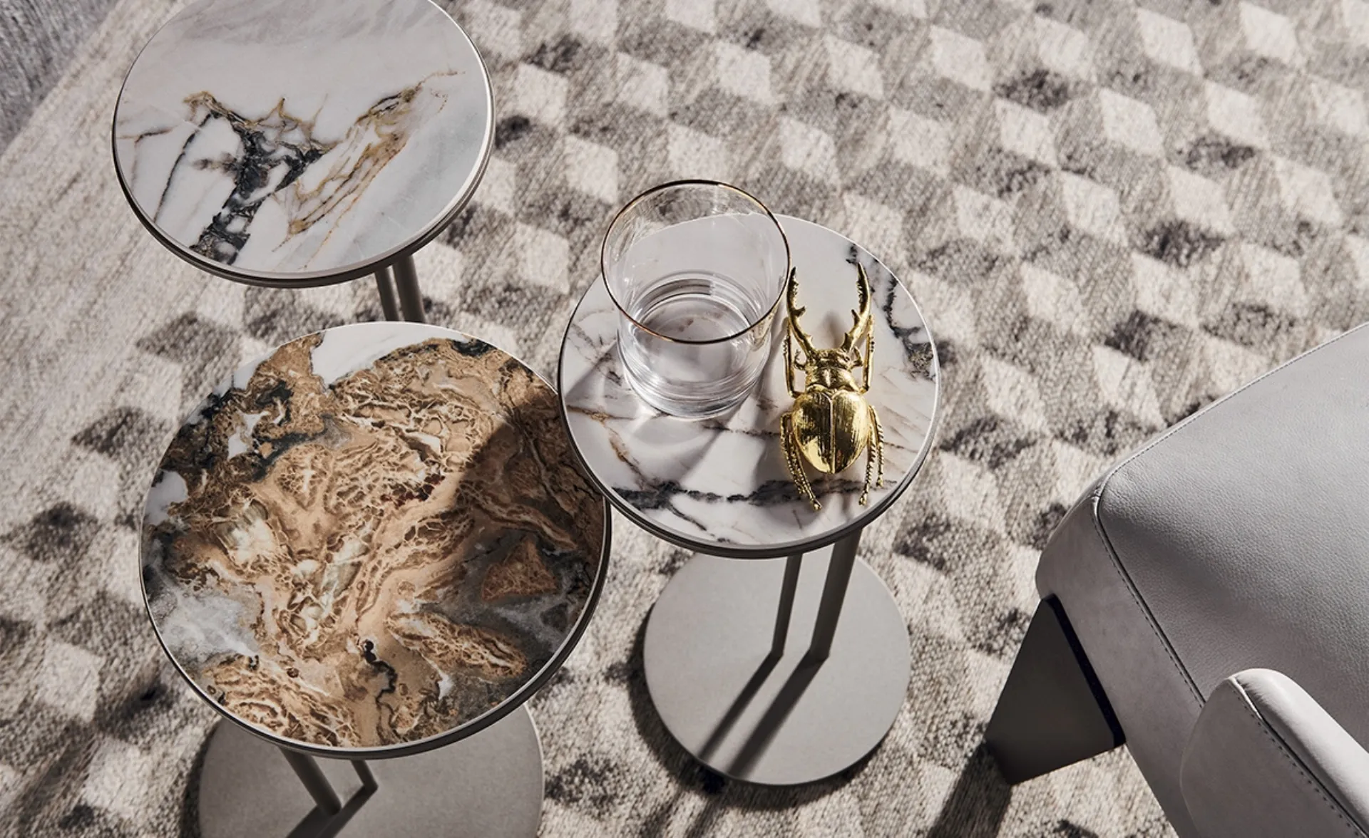 Mimarlarımız, doğru masa tipini satın almanızda size eşlik edecekler, böylece çevrenin pratik ve estetik yeteneklerini tamamlayabilirsiniz. Showroomumuzda Cattelan Italia mobilyaları ve aksesuarları sunuyoruz: güzel Cattelan Italia imzası Complementleri neredeyse sonsuz seçenek sizi bekliyor. Complementleri mobilyalarla nasıl eşleştirebilirim? Cattelan Italia'nın çeşitli önerileri sayesinde, dekorasyon yaratıcılığınızı serbest bırakmak için tonlar ve dokular sunulmaktadır. Seramik Sting Cattelan Italia sehpa: tasarım atıflı ev ortamlarında yer açarak, büyük pratik ve tasarım yeteneklerini mükemmel bir şekilde birleştirir. Complementler ve tasarım masalar, evlerimizin dekorasyonuna büyük değer katar ve güzel görünmesinin yanı sıra çok yönlü ve