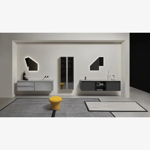 Antoniolupi'nin 03 numaralı Binary Banyo Mobili: Tıklamanız yeterli, mat laker boya ile süspansiyonlu banyo mobilyaları ve mark