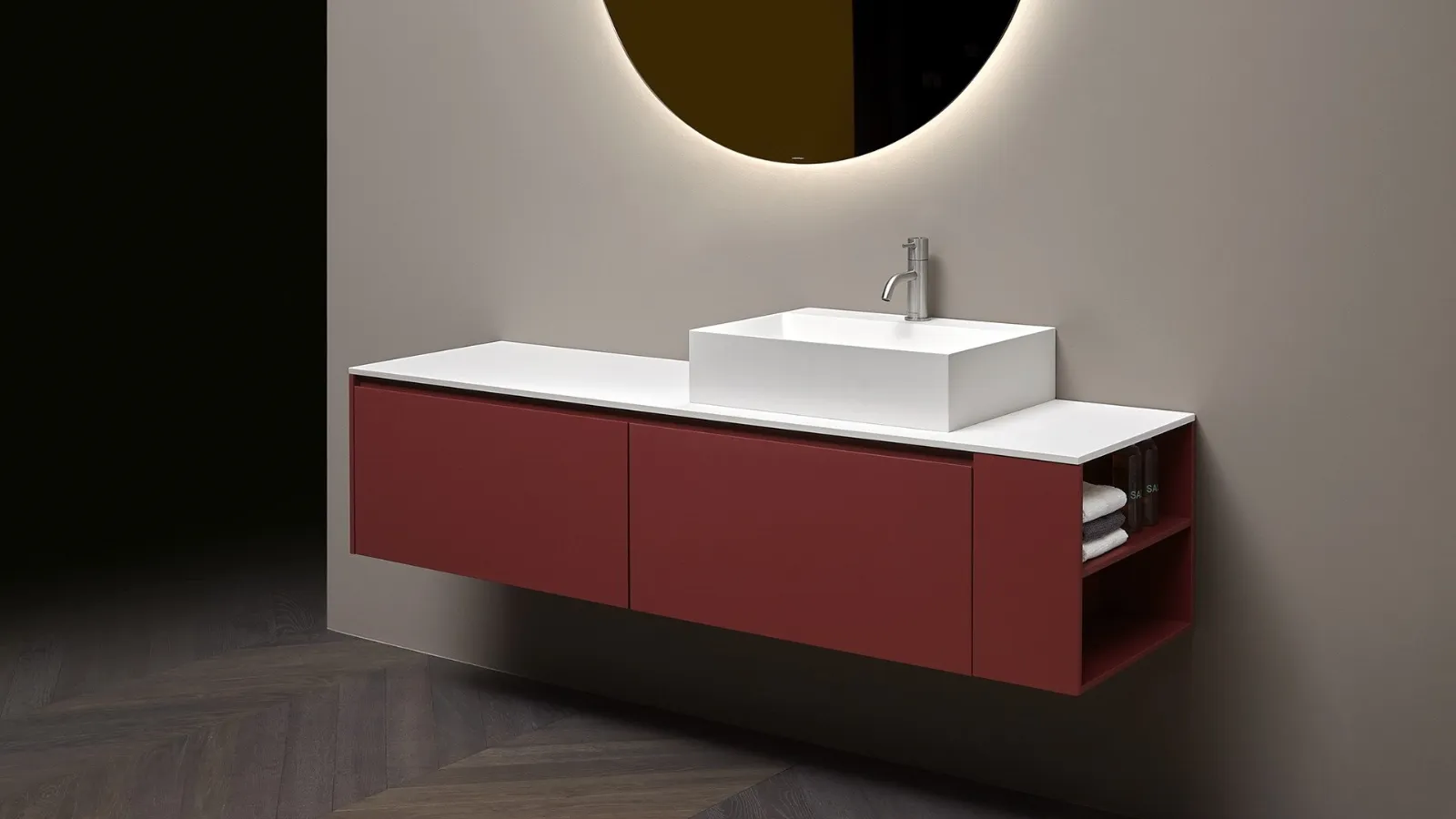 Markanın ürünleriyle gerçekleştirilen her proje, her türlü duvara monte edilebilen banyo mobilyalarıyla karakterize edilebilir, her zaman dayanıklı ve sağlam malzemelerden yapılmıştır. Ev banyoları tarzları ve boyutları açısından değişir, bu yüzden herkes kendi ihtiyaçlarına uygun ideal çözümü bulmalıdır. Banyo odası, kişisel bakım ve refahın yeri olduğundan, işlevselliği ve tasarımı bir araya getirerek dekore edilmelidir. Antoniolupi markasının geniş kompozisyon seçenekleriyle banyo odanızı en ince detaylarına kadar düzenleyebilir, yerleşim sorunlarınızı çözebilirsiniz. Markanın sunduğu renkler, malzemeler ve öğeler, duvara monte edilen banyo mobilyalarıyla modern banyo dekorasyonunu organize etme fırsatı sunar. Antoniolupi'nin saten mat lakkaya sahip Gestomood Banyo Mobilyası modelini tanıtıyoruz, bu model alanı mükemmel bir şekilde zenginleştir