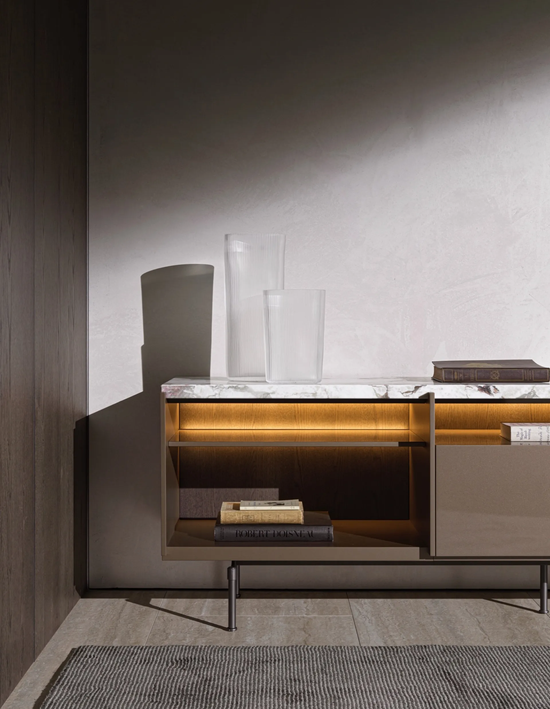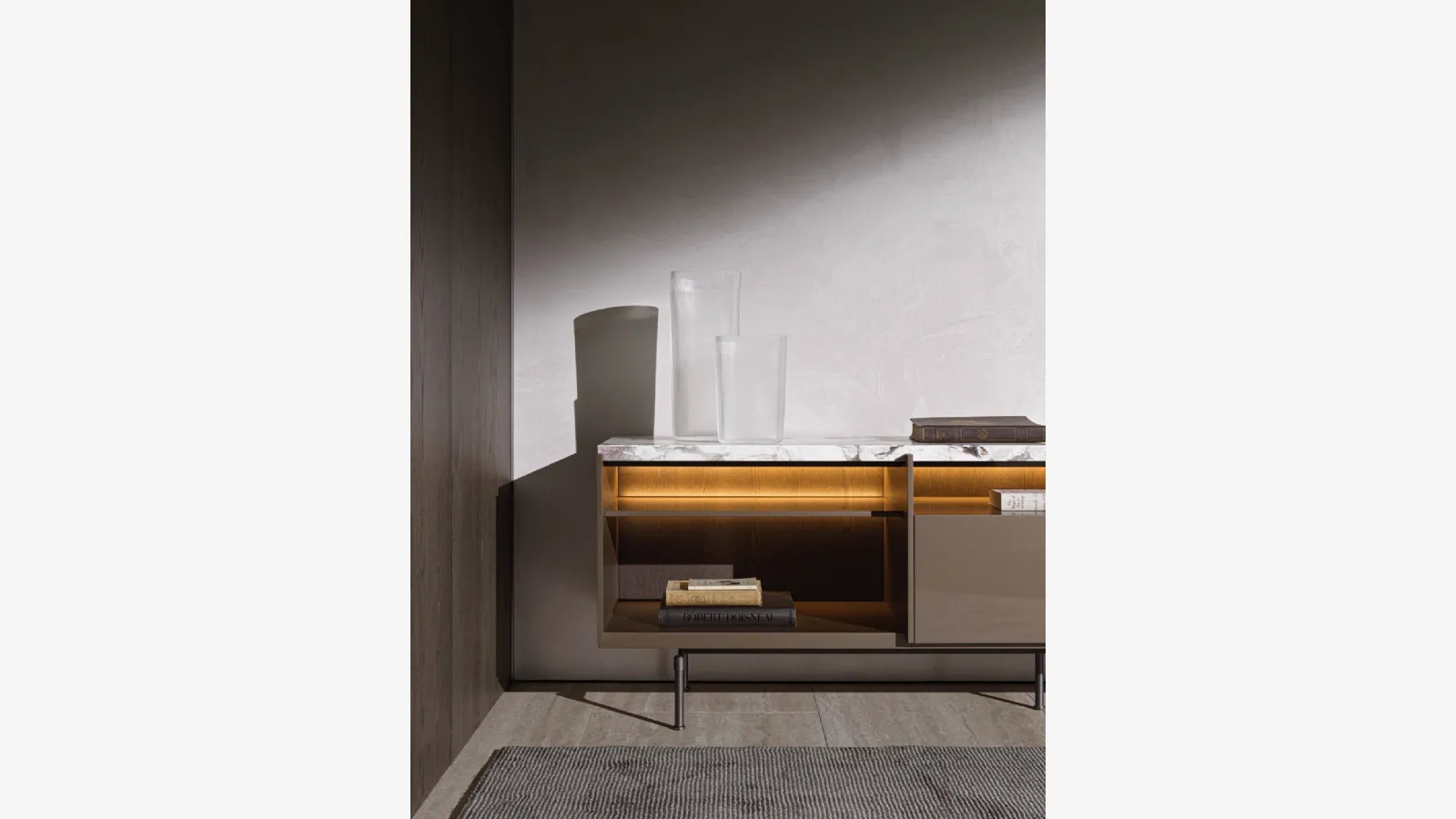 Molteni & C'den bu işte olan Madia Logos, parlak lakerajıyla mükemmel bir çözümdür, çünkü oturma odasına zarif bir dokunuş katmaktadır. Oturma odanızı en iyi şekilde düzenlemek için sağlam, hoş ve şık bir madia istiyorsanız, En İyi Mobilya Markaları arasındaki en orijinal modern madilerimizden esinlenin. Oturma odanızı değerlendirirken konut problemlerinizi takip edin: mağazamızda fotoğrafta gösterilen model gibi parlatılmış lakerajlı birçok oturma odası mobilyası çeşidi bulabilirsiniz. Mobilya alanında uzmanlar için bu modern çizgilere sahip oturma odası mobili modeli, tanınmış markanın mükemmelliğini garanti eder: bilgi ve fiyat teklifi için bize ulaş