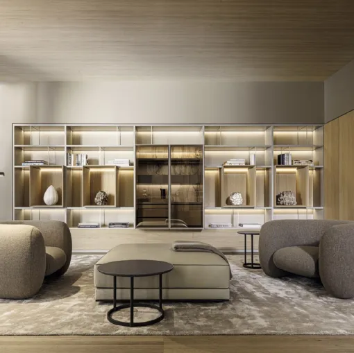 Oturma odası mobilyaları, modüler kitaplık gibi, kitapları, gazeteleri ve çeşitli eşyaları içeren düzenli bir alanı korumayı sağlar. Oturma odasını düzenlemek basittir: ortamı döşemek ve alanın görünümünü değerlendirmek için uygun kitaplık tipini seçin. Sağlam, işlevsel, hoş ve aranan bir ahşap oturma odası mobilyası arıyorsanız, modern çözümlerimizi incelemek size uygun modeli bulmanıza yardımcı olacaktır. Molteni & C'nin 505 UP SYSTEM 03 kitaplığı, pratik, dinamik ve yüksek estetik değeri olan bir alana rahatça uyum sağlar. Oturma odasına değer katmak mümkündür: görüntülenen oturma odası mobilya modeli hakkında daha fazla bilgi almak için bize ulaşın ve tanınmış markanın sağladığı kaliteyle evinizi optimize edin.