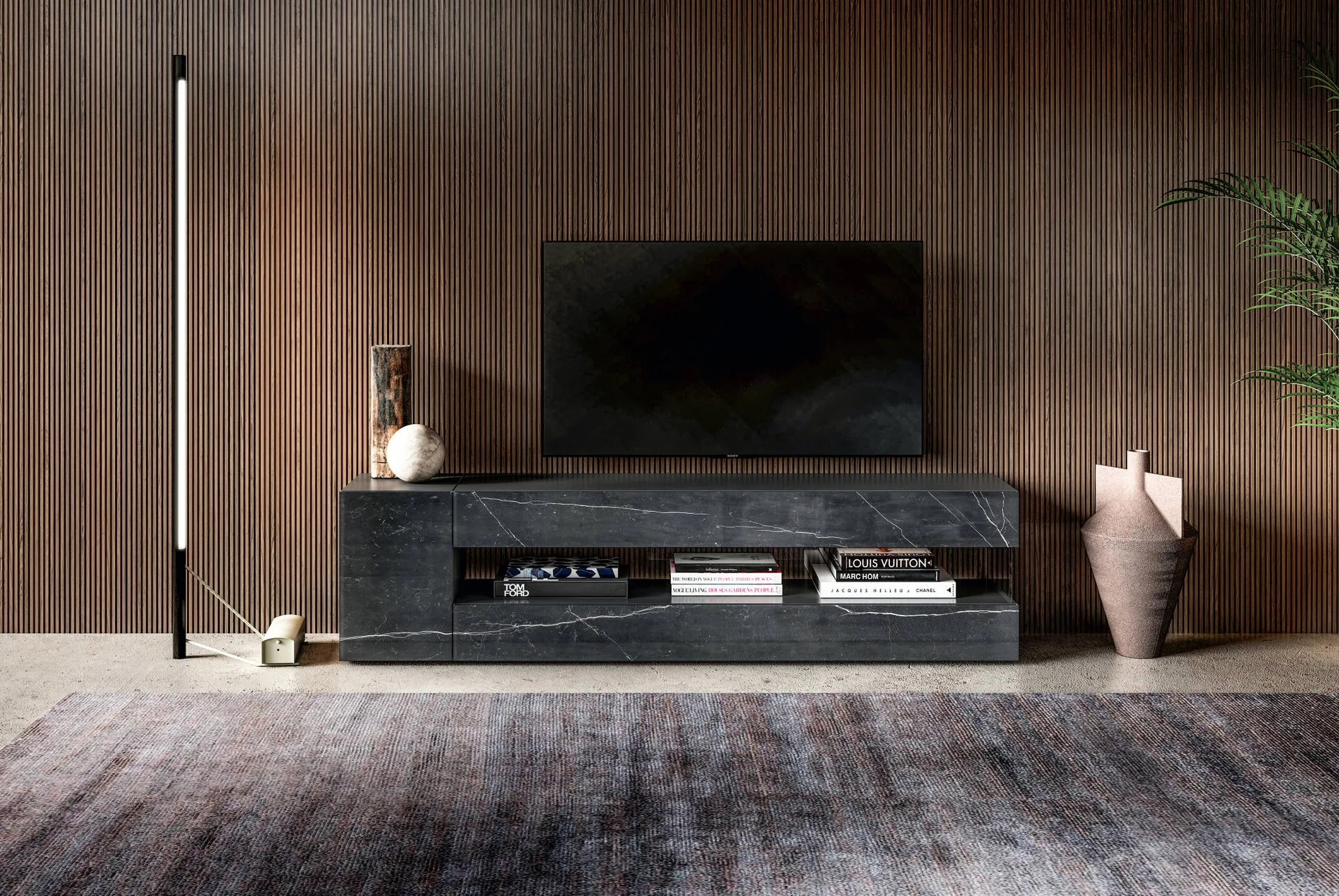 Büyüleyici bir yaşam alanı için neredeyse sonsuz bir yelpazede bulunan büyüleyici aksesuar tamamlayıcılar arasında, çok fonksiyonlu TV üniteleri önemli bir yer tutmaktadır. TV üniteleri iç mekanları kişiselleştirir, alanı dekore eder ve yaşam alanında çok fonksiyonlu bir destek masası kullanma fırsatı sunar. Yüksek kaliteli cam TV üniteleriyle donatılmış bir kompozisyon arıyorsanız, Lago markasının en güzel çözümlerini showroomda canlı olarak görebilirsiniz. Markanın cam TV üniteleri arasında yer alan, fotoğrafta gözüken model kesinlikle sizi memnun edecektir: yaşam alanınızı fonksiyonellik ve tarzla buluşturun. Tarzınızı evinize eklemek için, özellikle eğer zaten tasarım mobilyalara