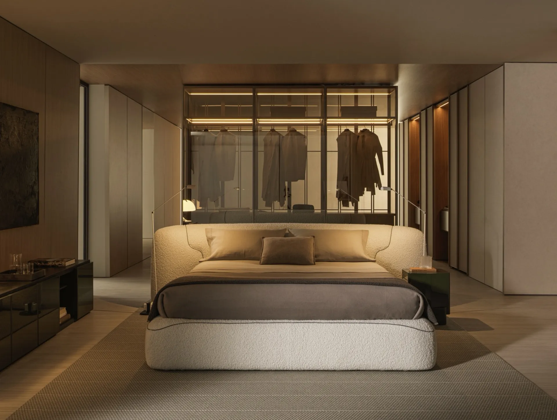 Bize ulaşın ve dolgulu çift kişilik yataklar koleksiyonumuz hakkında daha fazla bilgi edinin: odanızı çözümlerimizle değerlendirin. Molteni & C’nin Theo kumaş yatağı markanın en orijinal ürünlerinden biridir, zamanla dayanıklılık, kaliteli işçilik ve benzersiz bir stil garantisine sahiptir. Bu, markanın sektördeki yıllar içinde edinilmiş deneyimi tarafından garanti edilen mükemmelliğin tümünü içeren büyüleyici bir çözümdür. Yatak odanızın dekorunu mükemmel bir şekilde tamamlamak için yatağı gardırop, şifonyer, aksesuarlar ve diğer elemanlarla uyum içinde değerlendirmek bir