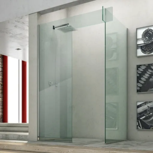Çağdaş banyo dekoru hakkında bilgi edinin: Megius'un Light Scorrevole modeli gibi cam duş kabini sizi bekliyor.
