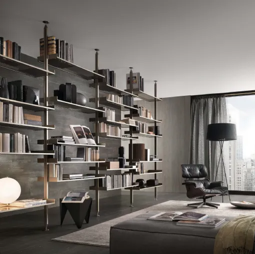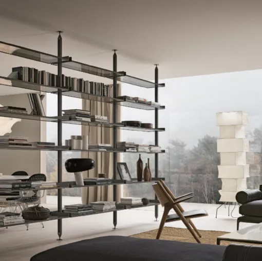 Tıklayın ve modern bölme raflarını keşfedin! Wind Piombo Rimadesio modeli dinamik ve işlevsel bir oturma odasını tamamlayacak