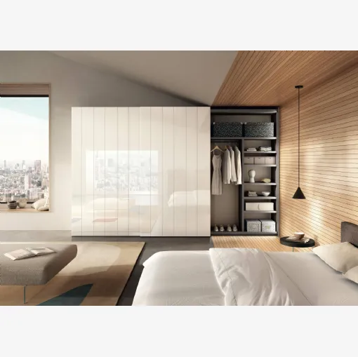 Eğer şık bir yatak odası istiyorsanız, Lago'nun kanatlı kapılı Groove 1189 dolabını