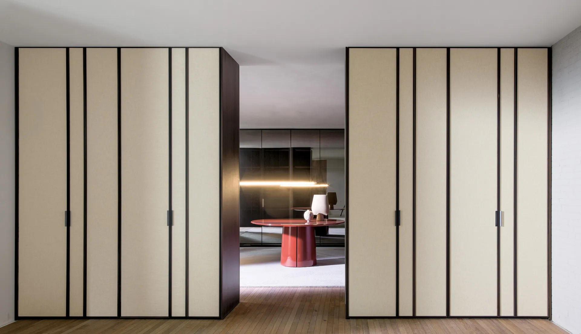 Mobilya konseptini mükemmel bir şekilde tamamlamak için en iyi markaların Ev Dekorasyon önerilerimizi seçin, zarafet, büyüklük ve bitiş açısından farklı yataklar, dolaplar ve komodinler. Taşıyan kanatlı dolaplar ve yürüyen dolaplar, yatak odanızı mükemmel bir şekilde düzenlemenize ve benzersiz bir estetik arayışına sahip olmanıza olanak tanır. Bilgi ve fiyat teklifleri için bize başvurun ve hayalinizdeki yatak odasını farklı modern depolama seçenekleri ile tamamlayabilirsiniz, resimdeki bu dokulu gardrop gibi. Molteni&C'in Gliss Master Blend Kumaş Kapılı Gardırobu: formu doldurun, bize ulaşın ve rüya gibi bir dinlenme odası yaratın. Yatak odası dinlenmeye adanmıştır, bu yüzden en iyi şekilde döşenmiş olmalı ve her zaman rahatlatıcı bir atmosfer yaratabilecek mobilyalar ve aksesuarlarla tamamlanmal