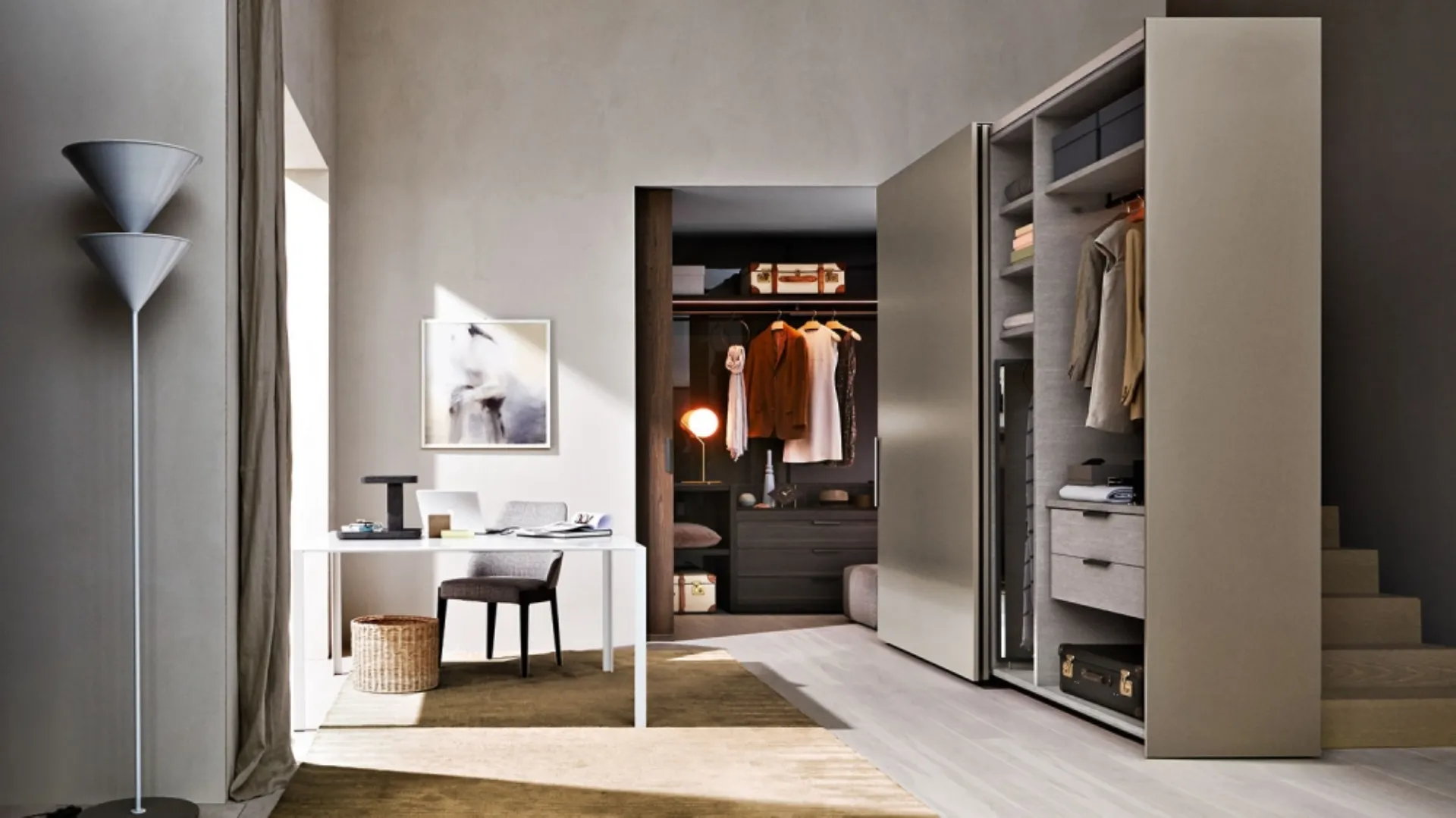 Bize bilgi ve fiyat teklifleri için ulaşın ve bu fotoğraftaki melamin dolap gibi modern depolama çözümleri sayesinde hayalini kurduğunuz yatak odasını tamamlayabilirsiniz. Dekorasyon projesini mükemmel bir şekilde tamamlamak için, en iyi markaların Ev Mobilyaları önerilerimizi seçin, sınıf, büyüklük ve malzeme açısından çeşitlendirilmiş yataklar, dolaplar ve komodinler. Molteni & C'nin Gliss Master Start sürgülü kapılı dolabı: Formu doldurun, bize ulaşın ve her zaman hayal ettiğiniz dinlenme odasını hayata geçirin. Uyku alanı dinlenme alanına ayrılmıştır, bu nedenle en iyi şekilde mobilya ile döşenmiş ve rahatlatıcı bir atmosfer yaratabilen mobilyalar ve aksesuarlarla tamamlanmalıdır. Sürgülü kapılı dolaplar ve dolaplar, odanızı mükemmel bir şekilde düzenlerken özel bir estetik ar