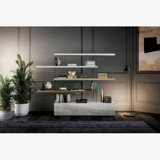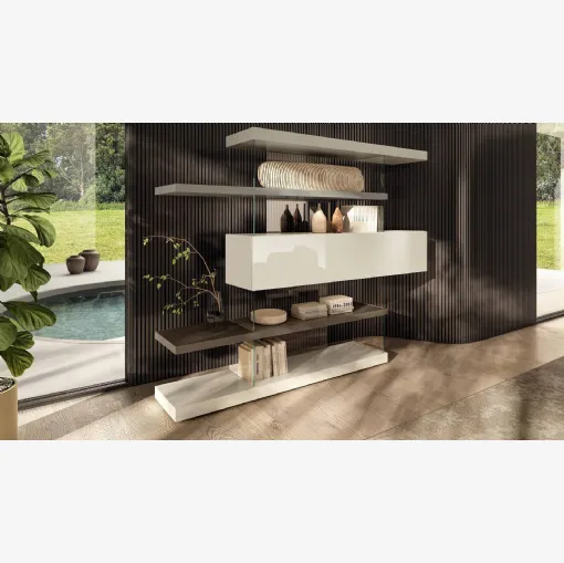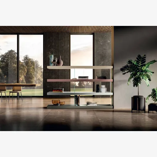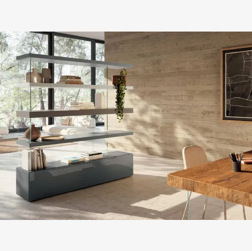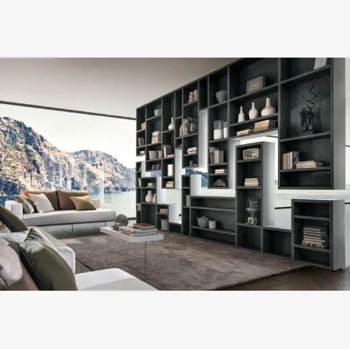 Tıklayın ve modern bölme raflarını keşfedin! Wind Piombo Rimadesio modeli dinamik ve işlevsel bir oturma odasını tamamlayacak