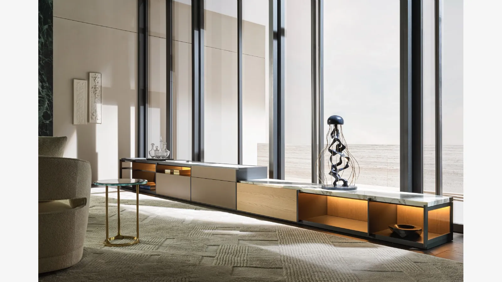 Kendi oturumunuza değer katmak mümkündür: Fotoğraftaki oturma odası modeli hakkında daha fazla bilgi almak için bize ulaşın ve tanınmış marka tarafından garantilenen kalite ile evinizi değerlendirin. Mat lake bir oturma odası mobilyasına ihtiyacınız varsa, dayanıklı, fonksiyonel, hoş ve zarif bir model arıyorsanız, modern çözümlerimizi incelemek size uygun olanı bulmanıza yardımcı olacaktır. Molteni & C'nin modüler Logos kitaplığı, pratik ve dinamik bir alan için mükemmel bir üründür ve büyük estetik değere sahiptir. Oturma odasını dekore etmek kolaydır: Ortamı düzenlemek ve atmosferini değerlendirmek için uygun kitaplık tipini seçin. Oturma odası için mobilyalar, modüler kitaplıklar gibi, kitapları, dergileri ve çeşitli dekorasyon objelerini tutarak alanı düzenli tutmanıza olanak tanır.