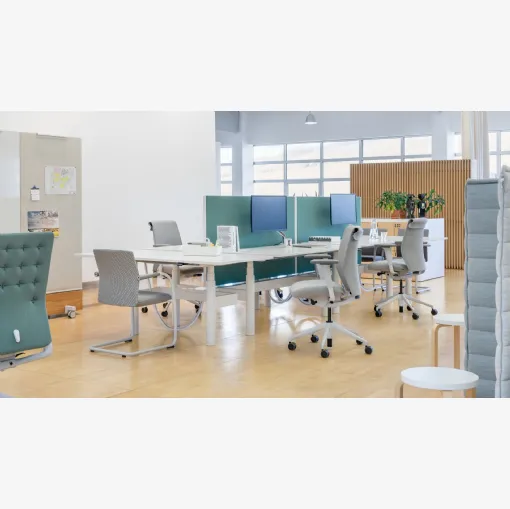 Zengin bir yüzey ağı ile çalışma masalarının zengin bir kataloğu seni bekliyor! Vitra'nın Tyde 2 Workstations modeli seni