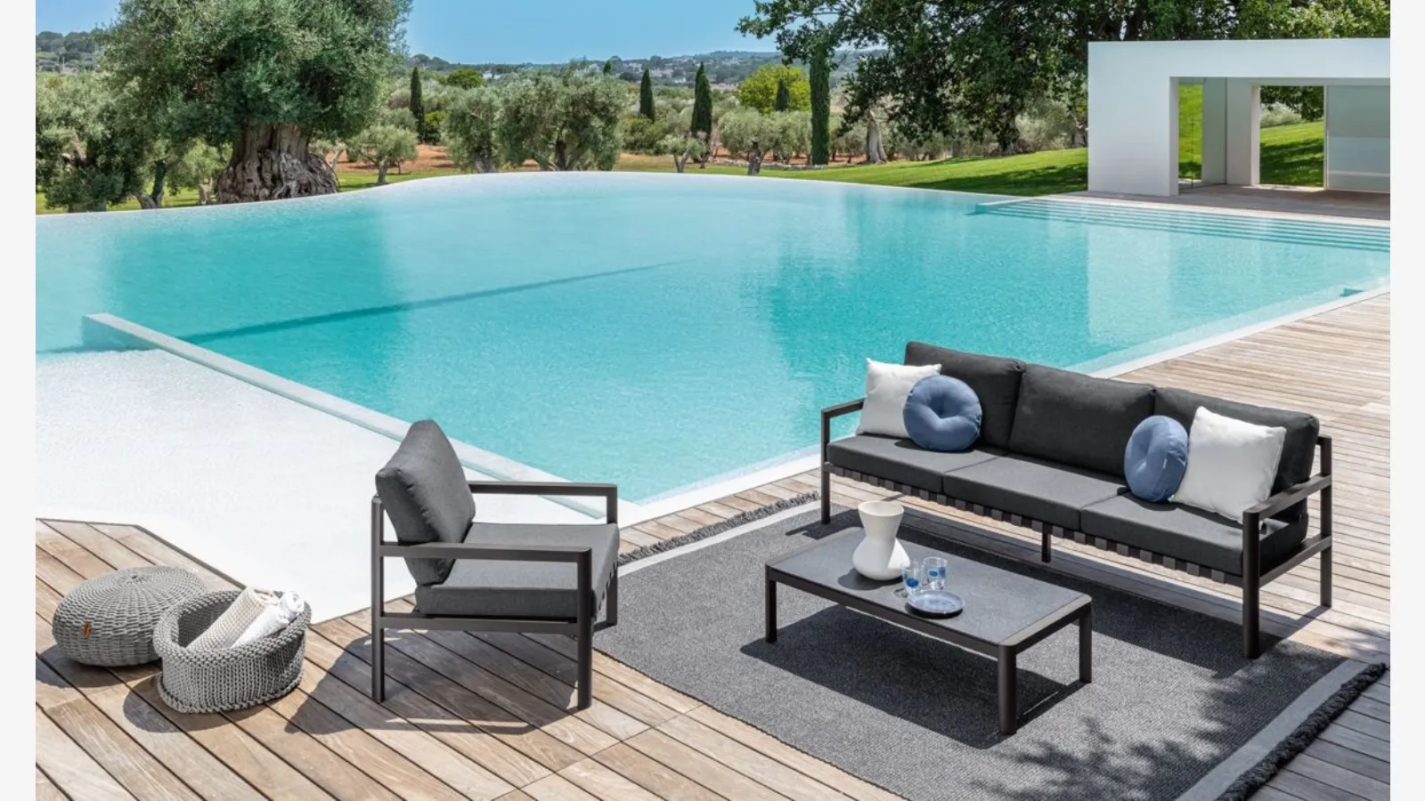 Kaliteli ve mükemmellik simgesi olan Talenti kumaşından yapılmış bu modern çizgilere sahip dayanıklı malzemelerle tasarlanmış bahçe koltuk modeli tanınabilir hale getirir. Talenti Nunù dış mekan mobilyası çözümü sayesinde, bahçede rahat bir oturma alanı yaratarak, fonksiyonellik ve tasarım özelliklerini birleştirir. İç mekanlardaki gibi, bahçede de mobilya zevkinizi yansıtabileceğiniz büyüleyici dekorasyonlar oluşturabilirsiniz. Dış mekanın da evin bir uzantısı gibi düşünülmesi gereken ve dikkatlice düzenlenmesi gereken bir yaşam alanı olması, en iyi şekilde organize edilmiş ve estetik açıdan değerli görünmesi için çaba harcanması gerektiğini anlatmaktadır. Mağazamızda en iyi markaların bahçe mobilyaları çözümlerini