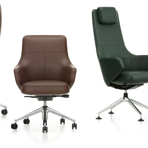 Fotoğraftaki model, Vitra imzalı çeşitli iş koltuğu modelleri arasında, mekânlara kişilik ve zarafet katacak, mantık ve rasyonaliteyi bir araya getirerek donatarak. İşyeriniz için deri iş koltuğu çözümleri ile çalışma alanınızı oluşturun: ofisiniz için zengin mobilya koleksiyonu mağazada sizi bekliyor. Mağazada, pazarda bulunan en özel deri ofis mobilyalarının tüm kombinasyonlarını elinizle deneyebilirsiniz, her zaman büyük değer sunan. Vitra, estetik değer ve işlevsellik konusunda çok çeşitli talepleri karşılayabilen, her zaman büyük değeri olan mobilyalar üretiyor. Vitra'nın deri ofis koltuğu Lobby Chair: ofis mobilyalarının neredeyse sonsuz çeşitliliği içinde yer alıyor ve ofis mobilyaları sektöründe lider olan markan
