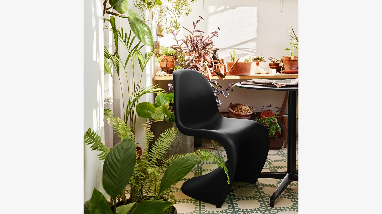 Verner Panton tarafından 1959'da tasarlanan Panton Chair, Vitra ile işbirliği içinde seri üretim için geliştirilmiştir (1967). Bugün bu tamamen plastik sandalye, 20. yüzyıl tasarımının ikonu haline gelmiştir. Çeşitli uluslararası tasarım ödüllerini almıştır ve birçok önemli müzenin koleksiyonunda yer almaktadır. Canlı ve pastel renk seçenekleri mevcuttur. Boyutlar: U.50 cm D.61 cm Y.86 cm Renk: Derin siyah Tüm fiyatlar KDV dahil olarak belirtilmiştir.