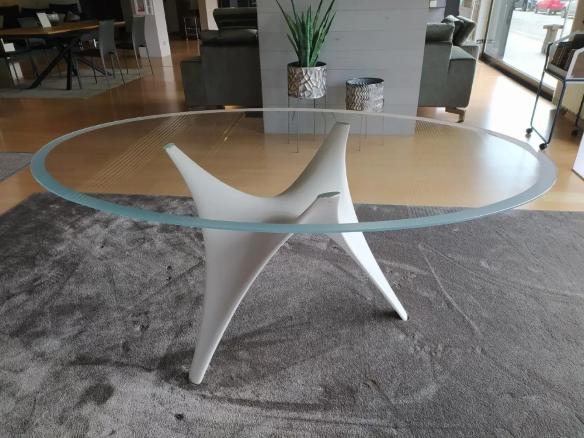 Bir heykel masa olan Arc, onu diğerlerinden ayıran birkaç yenilikçi konsepti birleştiriyor. Tabanın şekli genellikle modern binalarda kullanılan teknolojik yapıları esinlenerek tasarlanmıştır, kullanılan malzeme ise reçine ve renk içeren özel bir lifli malzeme katkısı olan yeni bir "hafif" betondur. Bu beton özel olarak hazırlanarak tek parça halinde kalıplanır ve topluca renklendirilir. Sonuç olarak dayanıklı bir yapı elde edilir, düşük yoğunluklu olması karmaşık formların oluşturulmasına izin verir. Arc masa dayanıklılık ve esneklik özelliklerini yenilikçi kavramlar olan tamamen geri dönüştürülebilirlik ve üretim sürecinin çevresel etkilerindeki azalma ile birleştirir. Yüzey Kaplaması: Bronz renkli boyalı beton taban, şeffaf cam üst tabaka 1.2 cm kalınlıkta Ebatlar: U.200 cm D.130 cm Y.73 cm Tüm fiyatlar KDV dahil olarak belirtilmiştir.