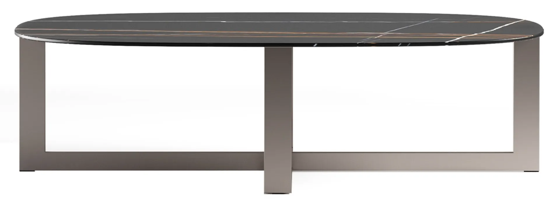 Nicola Gallizia, araştırmaya dayalı olarak stilize edilmiş formlar ve belirgin kişilikli malzemeler arayışına dayalı olarak esnek konstrüksiyon ve kullanım için çok yönlü elemanlar programı geliştirmektedir, sürekli olarak birbirini takip eden ve üst üste binen bir oyun içindedir. Oval sehpa ve puflar gibi tamamlayıcılar herhangi bir tasarım ifadesi için kullanılabilen ve çelik, ahşap, taş, kumaş ve deriyi kullanarak ve birbirlerini sırayla kullanarak üretilmiştir. Renk, malzeme ve form koleksiyonun ilham kaynağı ve özeti olarak hizmet eder. Yapı : Mat metal iskelet, 2 cm kalınlığında sahara noir mermer tabla Ölçüler : U.120 cm D.70 cm Y.39 cm Tüm