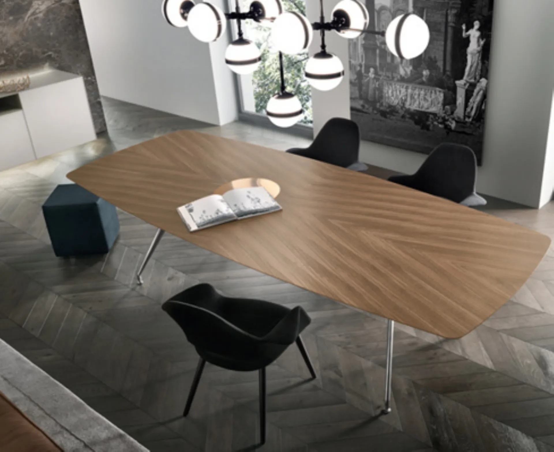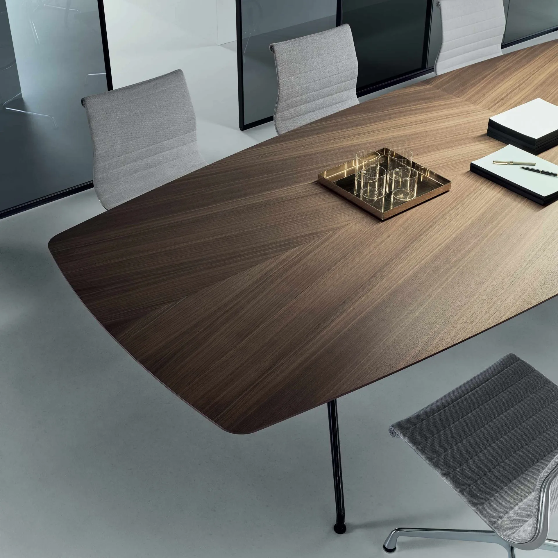 Rimadesio'nun estetik orijinalliği araştırma ve teknolojik yenilik yoluyla elde etme kararlılığını açıkça ifade eden bir masa sistemi. Döküm alüminyum modüler yapı ve sertleştirilmiş alüminyum alaşımı merkez çubuğu, minimum kalınlıklı profillerle maksimum güvenilirlik sağlamaya olanak tanırken yapısal modüler tasarım, istisnai boyutlara uygulama olanağı sunmaktadır. Finişler: Boyalı metal base 303 bronz, ceviz ahşap tablo Boyutlar: U.240 cm D.106 cm Y.74 cm Tüm fiyatlar KDV dahil olarak belirtilmiştir.