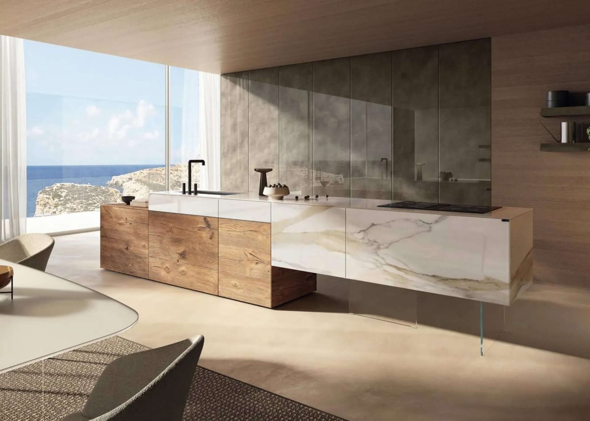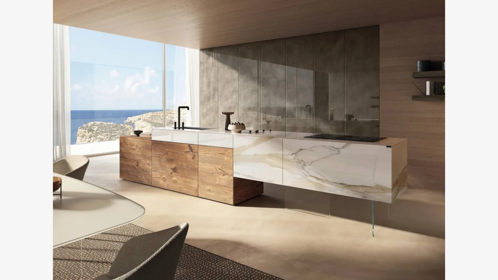 Tasarım, burada bulunan gibi tasarım tarzında ada mutfaklarını satın almadan önce dikkate alınması gereken temel unsurlardan biridir. Cam Tasarım Mutfaklar, zamanla orijinal güzelliklerini korurken, pratik özelliklerine ek olarak mükemmel bir estetik etki sağlar. İç mekanlarınızı kaliteli mobilyalar ve aksesuarlarla donatmak istiyorsanız, önerimiz Lago'nun 36e8 Project 2810 adasına sahip Tasarım Mutfak tercih etmenizdir. Lago, her müşterinin malzeme, şekil ve renk çeşitliliği konusunda özgür olabileceği modaya uygun mobilyaların üretiminde uzmanlaşmış bir mark
