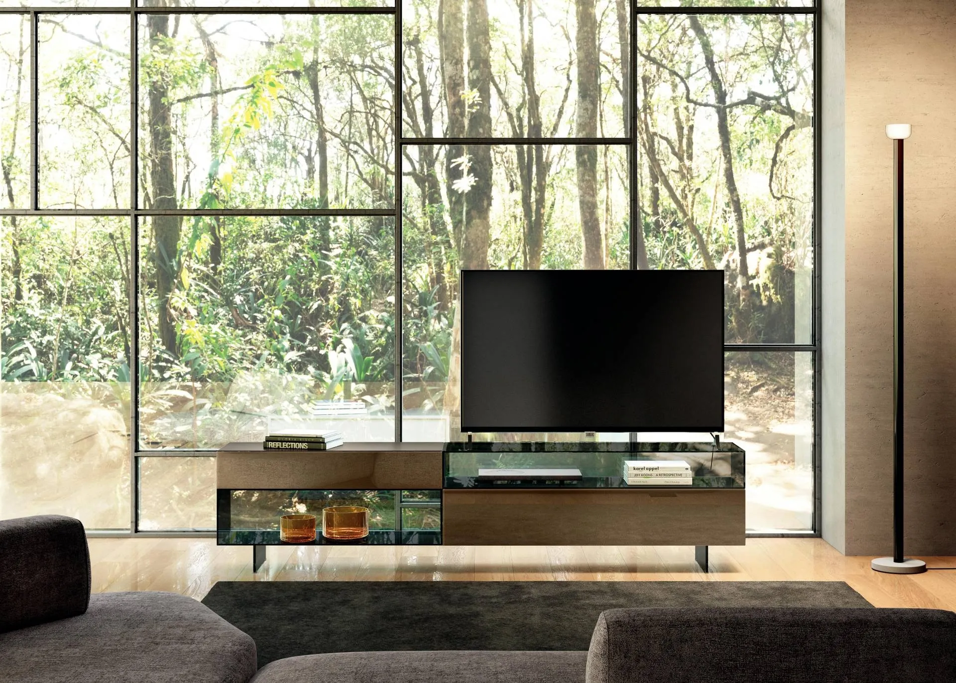 Konaklama, cazip, işlevsel ve iyi döşenmiş bir alan olmalıdır, bu nedenle iyi bir TV ünitesi modeli seçimi büyük fark yaratır. TV Üniteleri, farklı amaçlar için kullanılan oturma odası mobilyalarıdır: alanı iyileştirmek ve optimize etmek için vazgeçilmez müttefiklerdir, işlevsel hale getirirler. Bu Lago'nun 36e8 Glass 2150 TV Ünitesi ile evinize karakter katabilir ve iç mekanları en iyi şekilde düzenleyerek estetiğini zenginleştirebilirsiniz. Televizyonu göz önünde tutmak ve eşyalarını düzenlemek için Lago'nun modern cam TV ünitesi gibi bir mobilya sizi hayal kırıklığına uğratmayacaktır. Lago imzalı modern TV üniteleri geniş koleksiyonunda, fotoğrafta gösterilen cam modeli, işlevsellik ve tarzın mükem