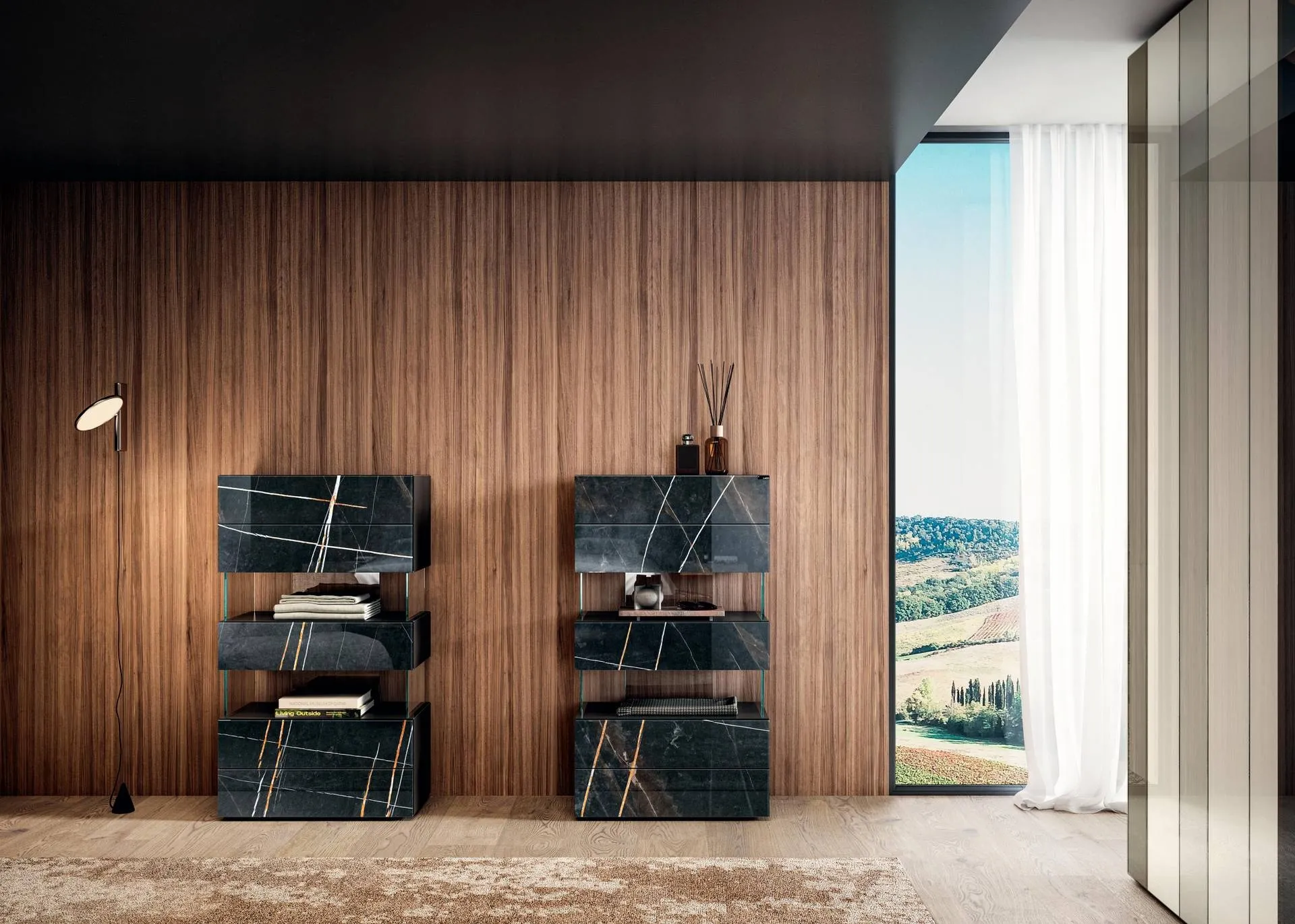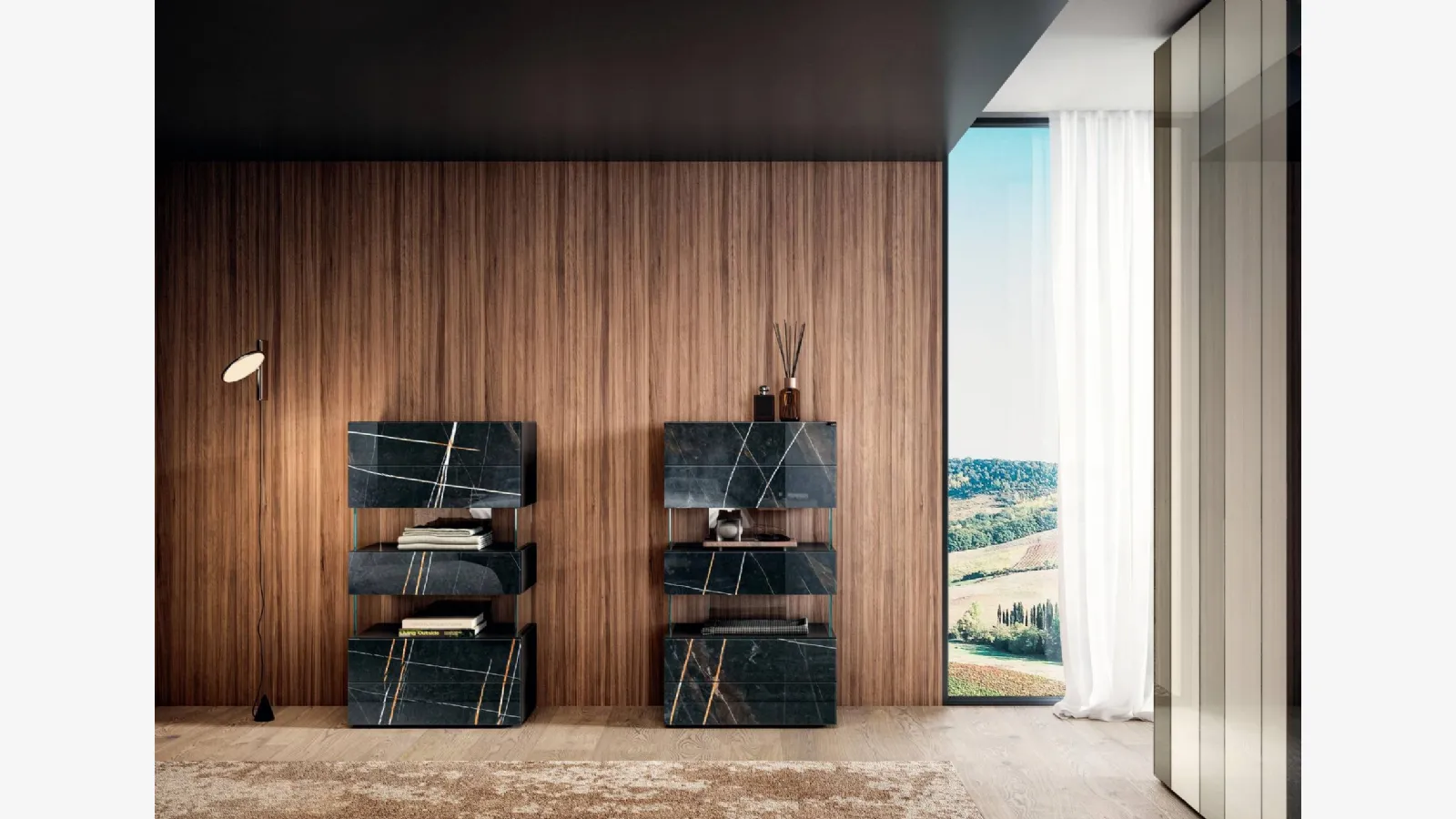 Komodinler yatak odasını tamamlayabilen, kesinlikle faydalı ve çok yönlü bir destek alanı sunan mobilyalardır. Yataklar, dolaplar ve komodinleri nasıl eşleştireceğini merak ediyorsunuz değil mi? Fotoğrafta gösterilen Lago modeli ile tasarlanmış bir dekorasyonla, tasarım odaklı bir mekan elde edersiniz. Lago'nun cam mermere benzer etkili Air 0681 modeli için seçkin malzemeler ve mükemmel işçilik, yatak odasını kendi zevklerinizi yansıtan bir mekana dönüştürmek için markan