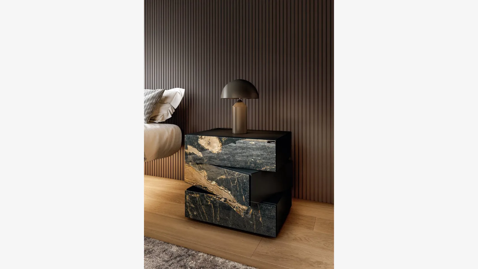 Değerlendir alanlarınızı seçerek nesnelerin uyumlu kombinasyonları veya tarz ve renklerle istenilen eşleştirmeleri yeniden yaratın. Sunduğumuz yatak odası mobilya ve aksesuar kataloğu ile cam modeli gibi özelleştirilebilir öğeleri seçebilirsiniz. Lago markasının tasarladığı yatak odası grupları ile dilediğiniz yatak odasını yaratabilirsiniz. Lago'nun lakereli cam Morgana komodiniyle iletişime geçin ve kendi yatak odanızı tasarlayın. Yatak odası ayrıca günlük kullanım için düzenlemeyi sağlayan çekmeceli komodinleri de içerir.